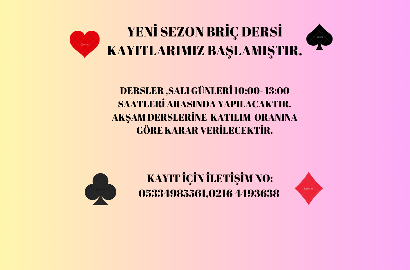 YENİ SEZON BRİÇ DERSİ KAYITLARI BAŞLAMIŞTIR